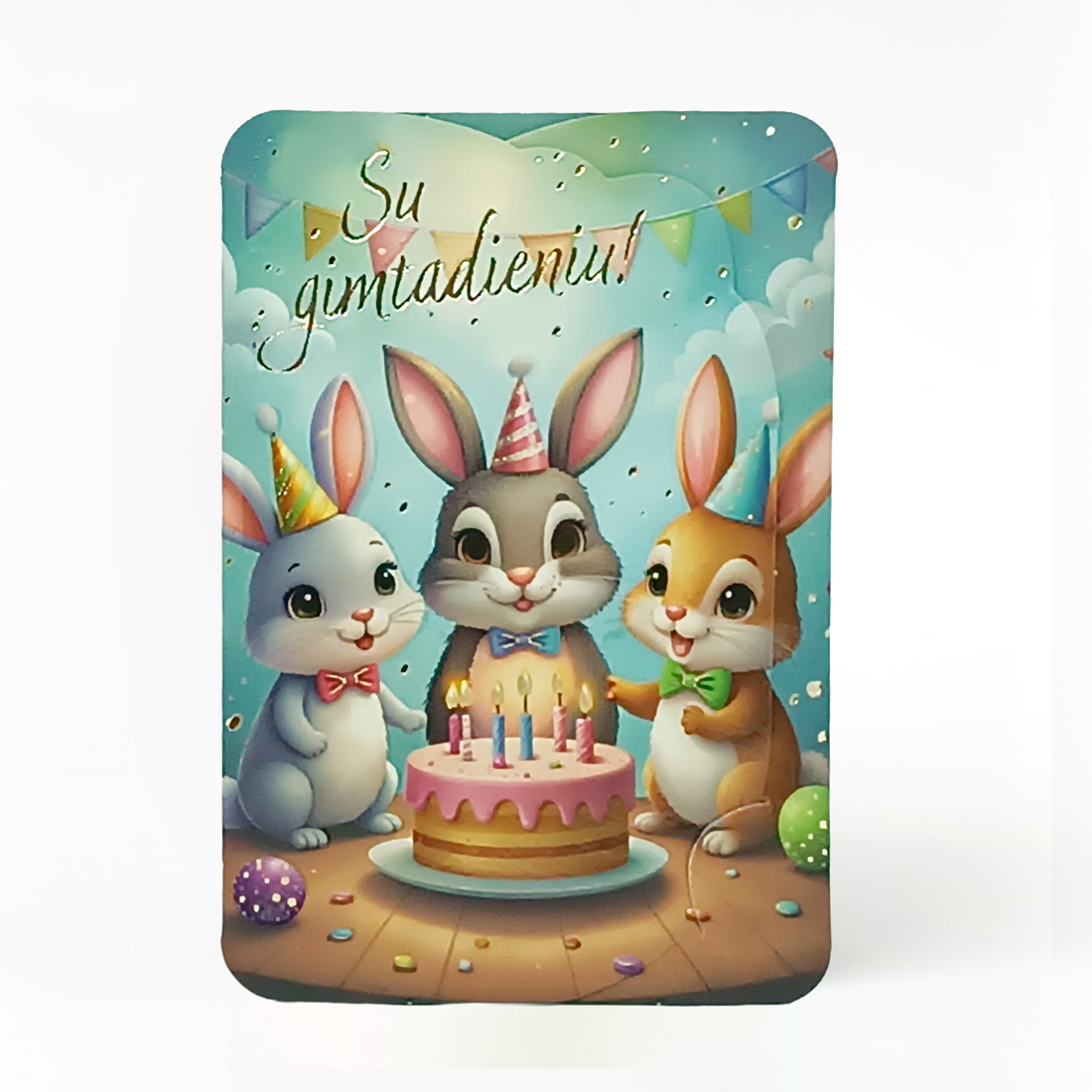 atvirukas, mažas, dovanų kortelė, trijų dalių, dovanoms, zuikiai, kiškiai, gimtadienis, tortas